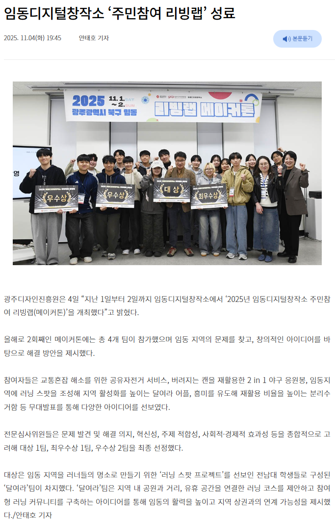 임동디지털창작소 ‘주민참여 리빙랩’ 성료-광주매일신문