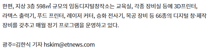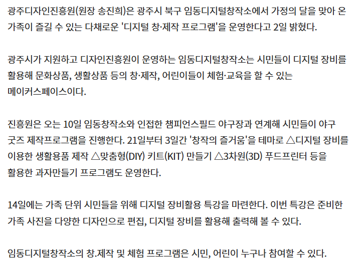 ※ 자세히보기 광주디자인진흥원, 임동디지털창작소서 '디자인 창·제작 프로그램' 운영 - 전자신문 (etnews.com)