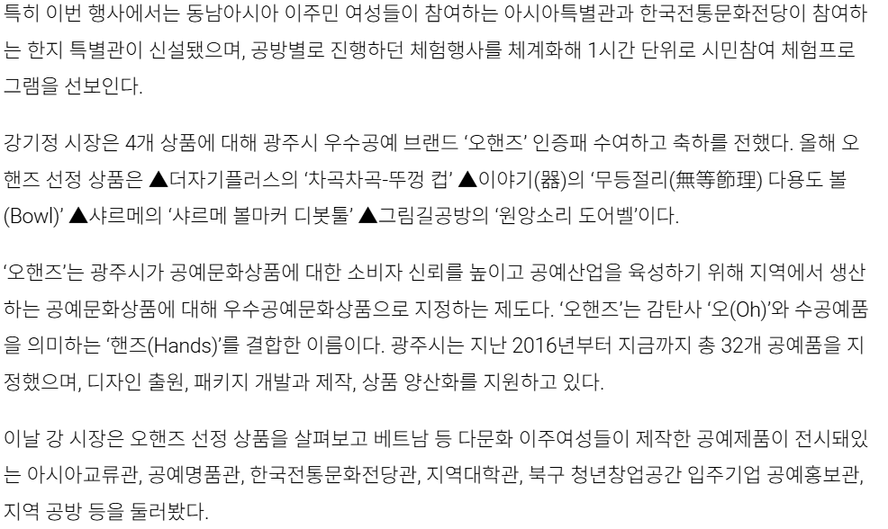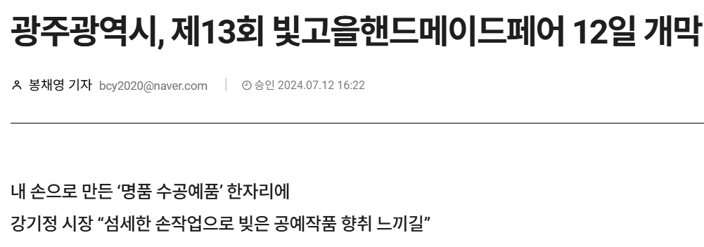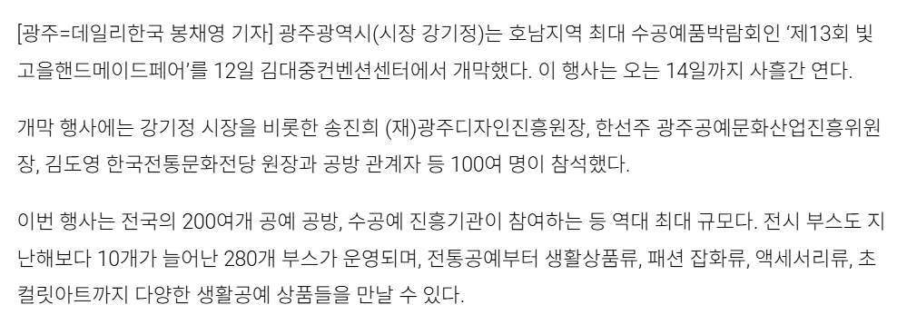 자세히보기 광주광역시, 제13회 빛고을핸드메이드페어 12일 개막 < 광주·호남 < 지역 < 기사본문 - 데일리한국 (hankooki.com)